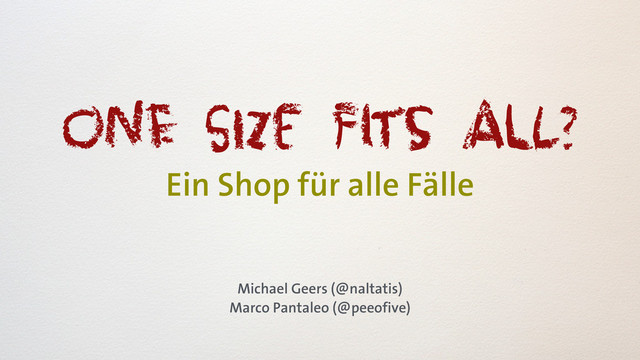 Vortrag vom neuland Fachtag 2014 RWD vs. Mobile Sites, E-Commerce, Atomic Design Michael Geers (@naltatis) Marco Pantaleo (@peeofive)