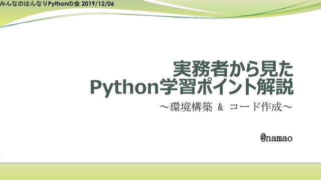 みんなのはんなりPythonの会 2019/12/06 ~環境構築 & コード作成~ @namao
