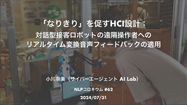 എ͕ߴ͍ΞόλʔΛ͏ͱɺڧؾͳަবΛ͢Δ[2] [1]: Rosenberg, R. S., Baughman, S. L., & Bailenson, J. N. (2013). Virtual superheroes: Using superpowers in virtual reality to encourage prosocial behavior. PloS one, 8(1), e55003. [2]: Yee, N., & Bailenson, J. (2007). The Proteus effect: The effect of transformed self-representation on behavior. Human communication research, 33(3), 271-290. ԕִϩϘοτ٬ • ΩϟϥΫλͱͯ͠ৼΔ͏ۀ • VTuberɺςʔϚύʔΫɺ… • →ࣗݾදΛมԽͤ͞ΒΕͳ͍͔ʁ Ξϓϩʔνͷֶࡍੑɾಠੑ 19 ʮԕִϩϘοτ٬ʯͱ͍͏࣮༻తγφϦΦʹɺ৺ཧֶతݟΛԠ༻