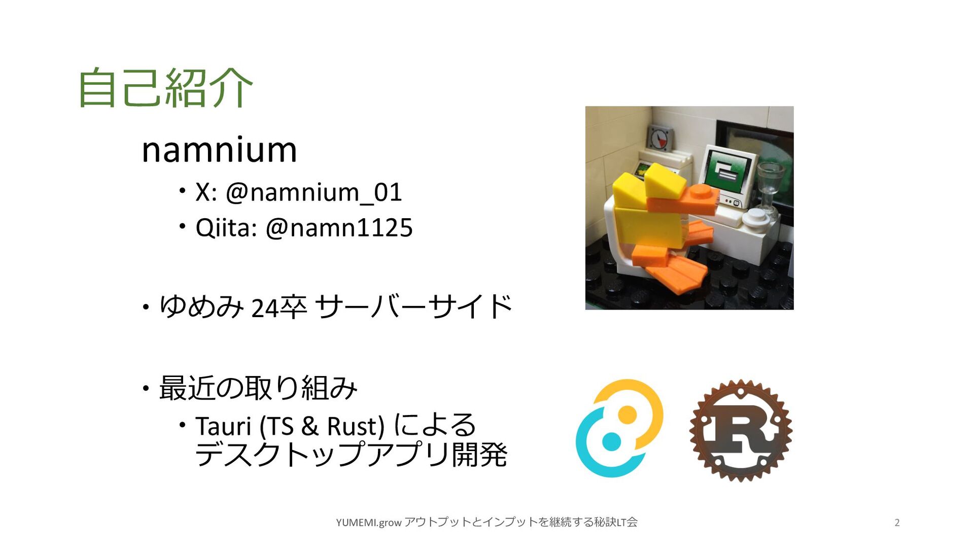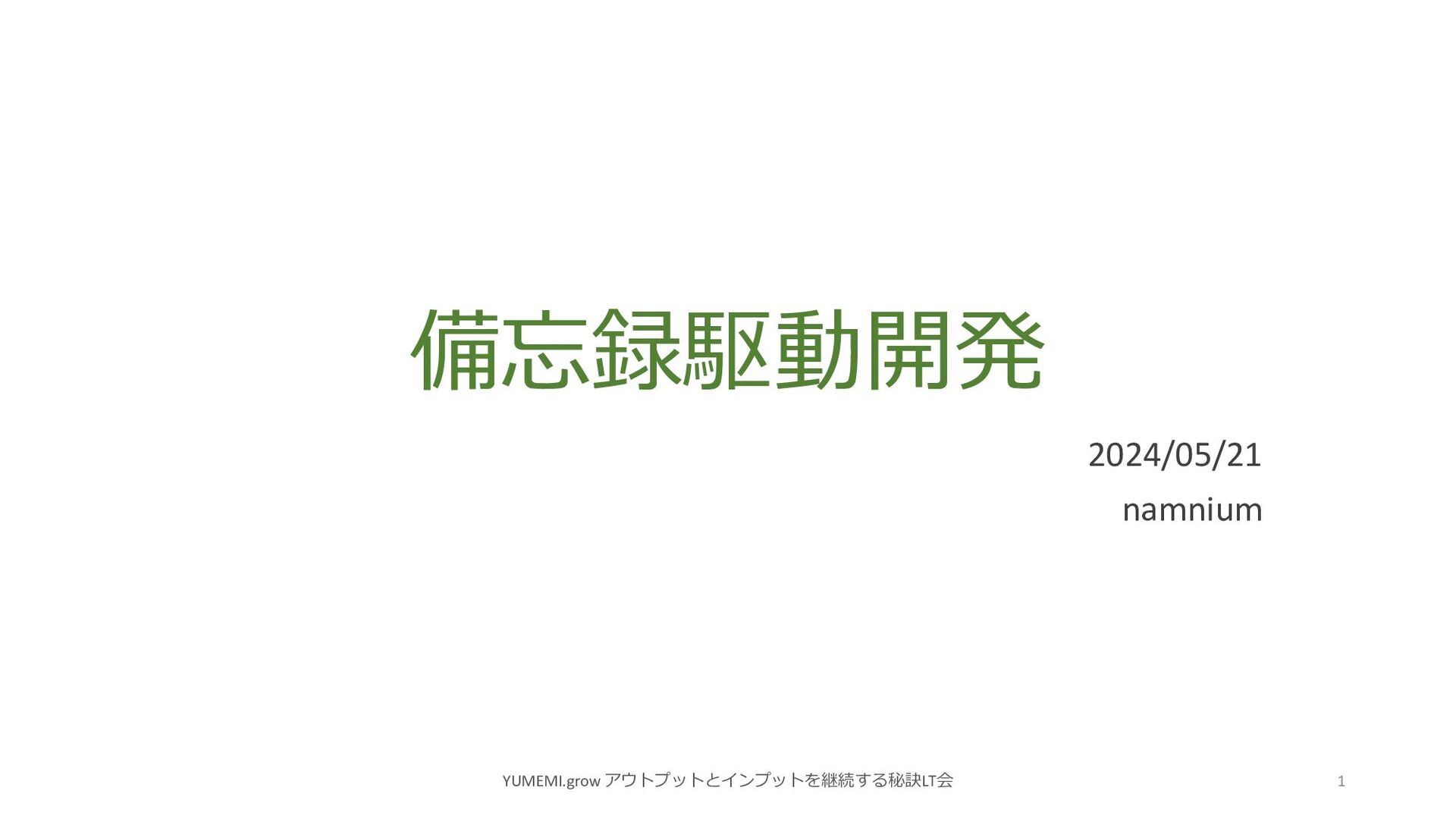 備忘録駆動開発 2024/05/21 namnium YUMEMI.grow アウトプットとインプットを継続する秘訣LT会 1