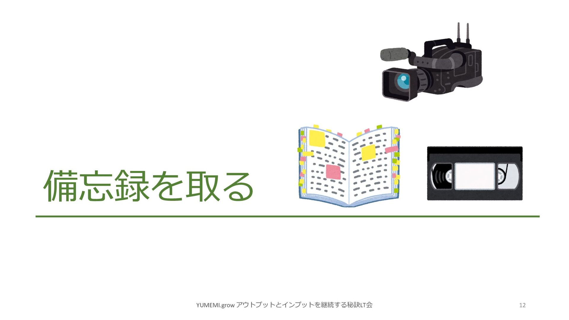 備忘録を取る YUMEMI.grow アウトプットとインプットを継続する秘訣LT会 12
