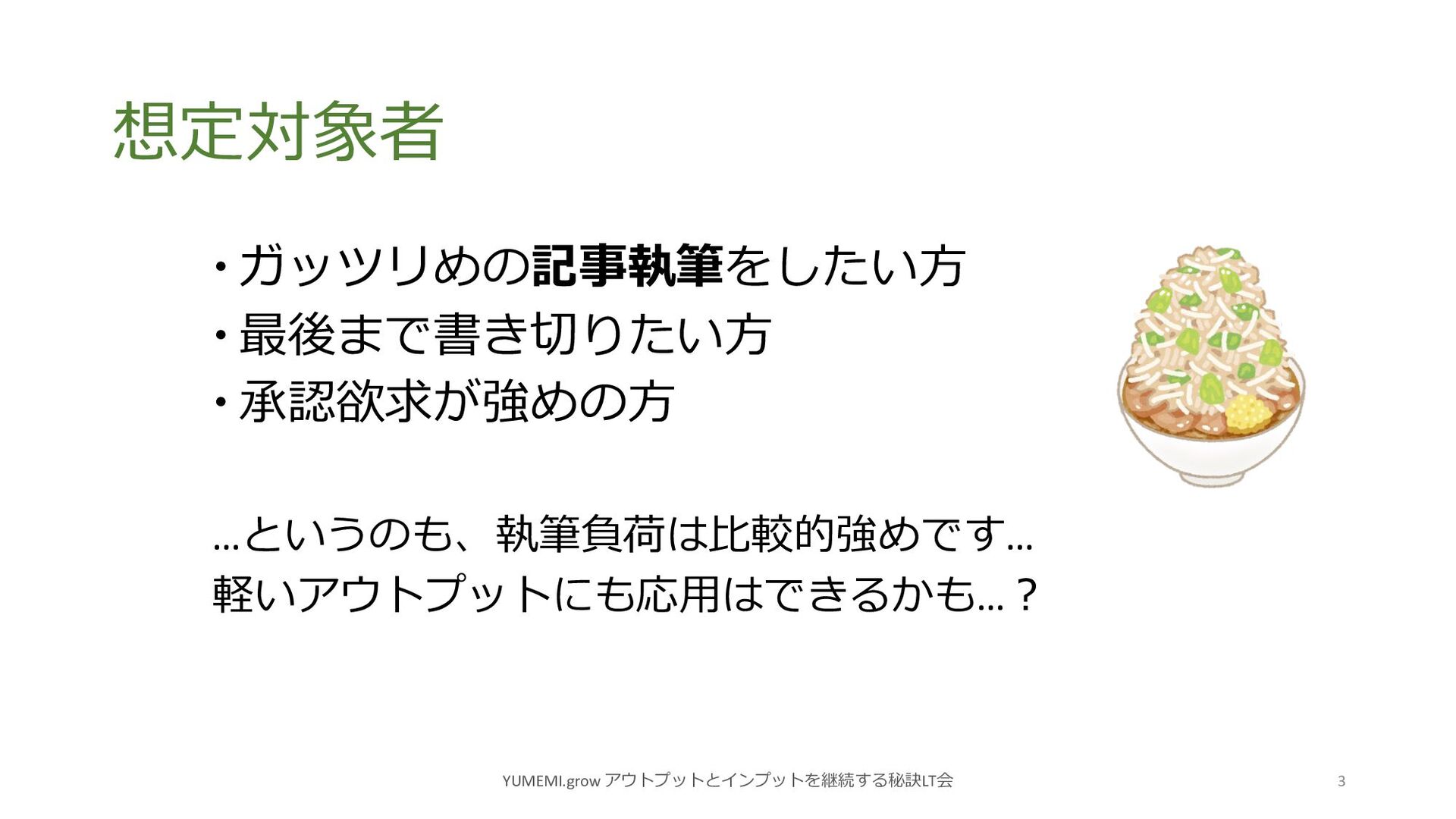 注意 YUMEMI.grow アウトプットとインプットを継続する秘訣LT会 16