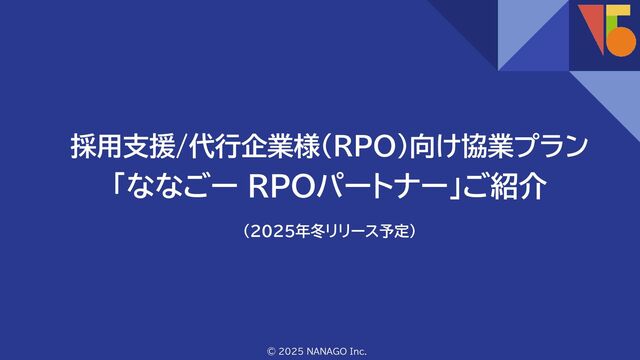 © 2025 NANAGO Inc. 採用支援/代行企業様(RPO)向け協業プラン 「ななごー RPOパートナー」ご紹介 (2025年冬リリース予定)