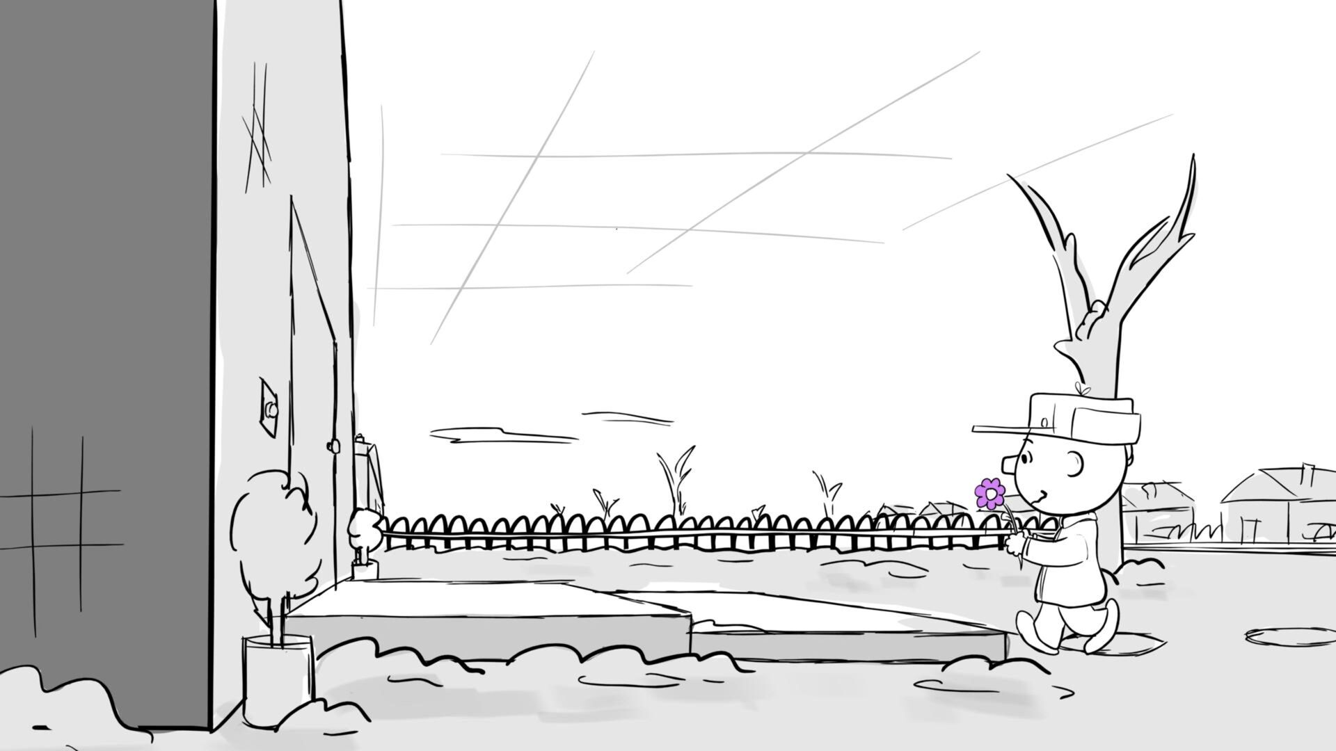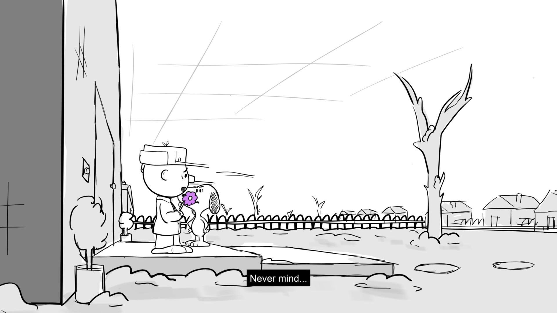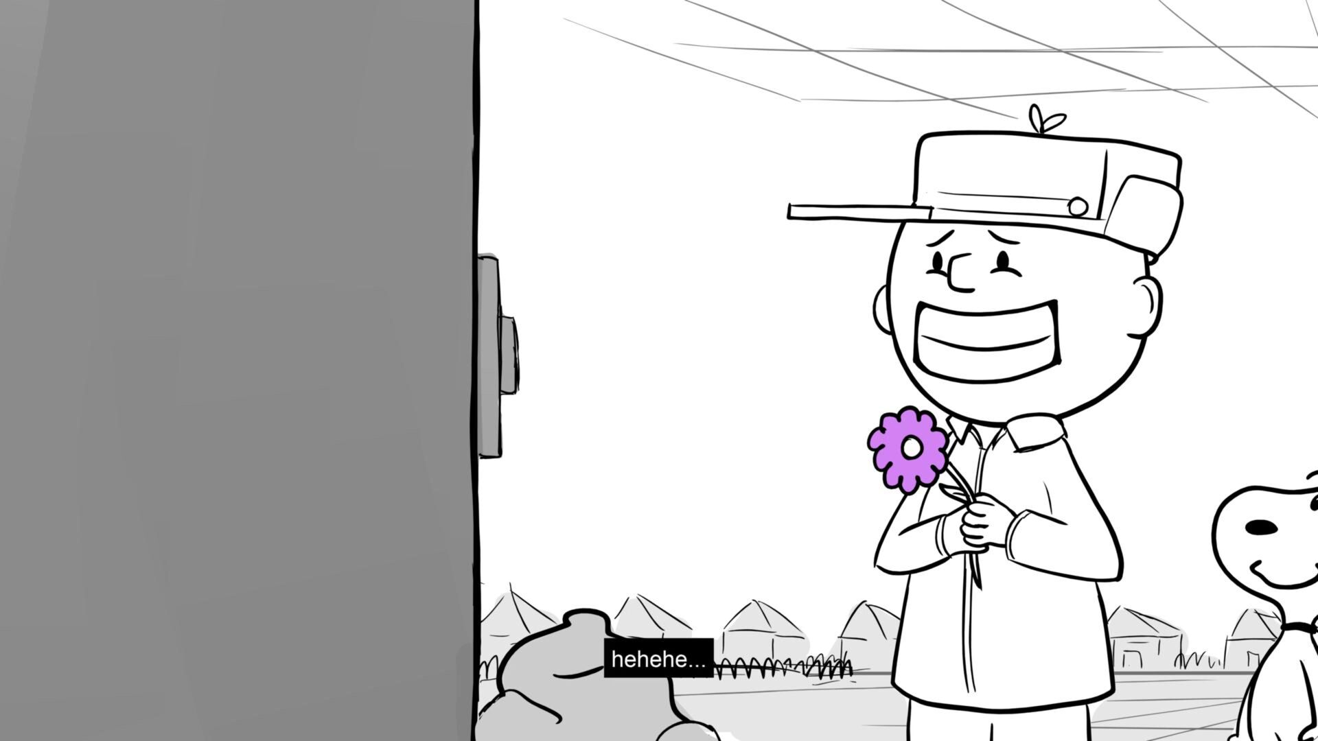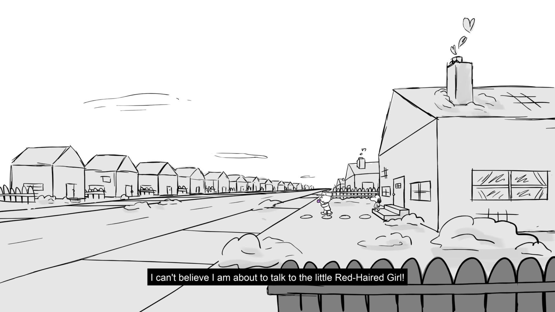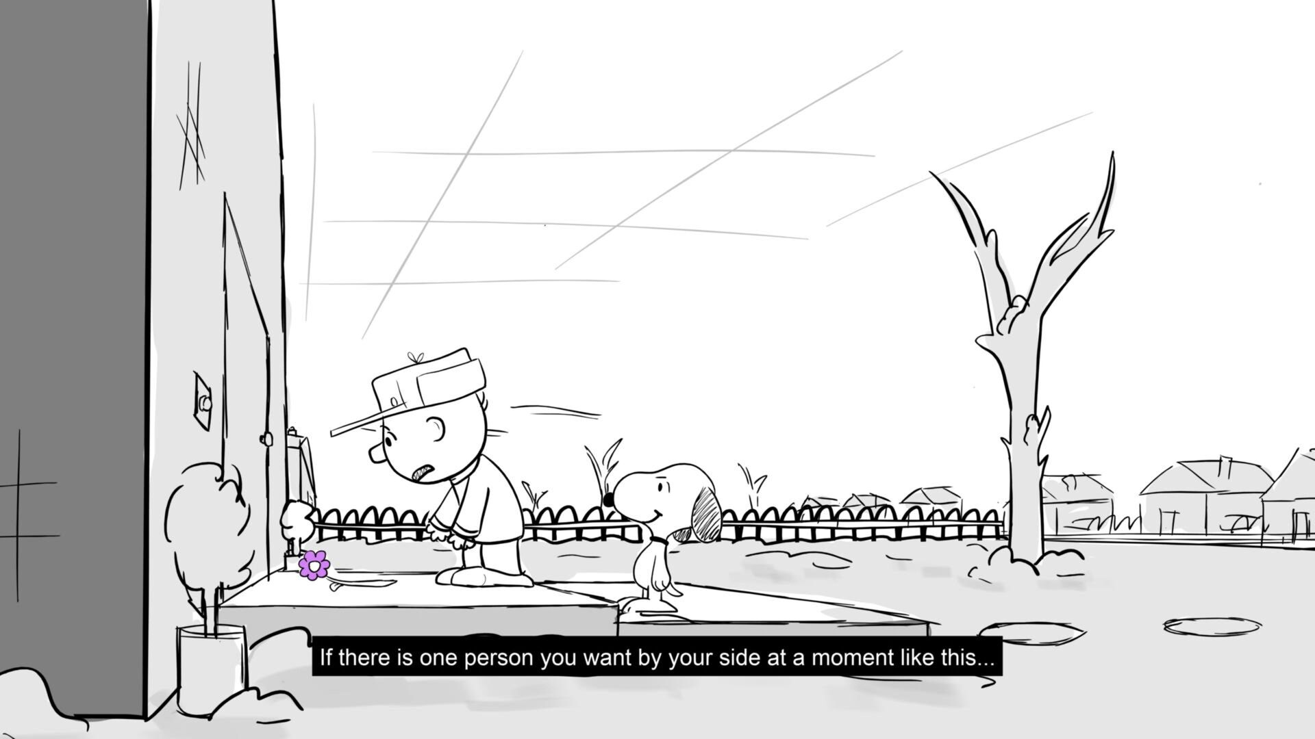 Charlie Brown anxiously plans on giving the little Red-Haired girl a purple flower with the help of his friend Snoopy.