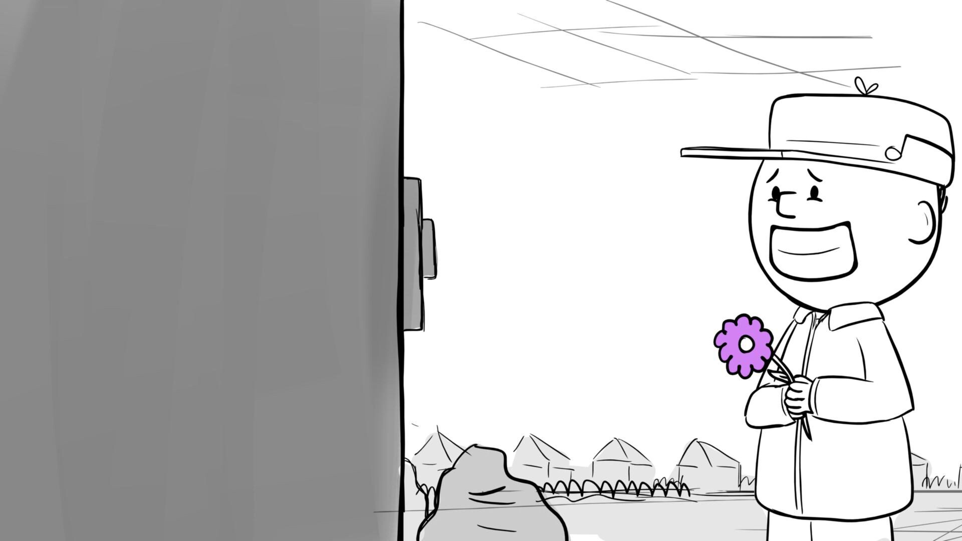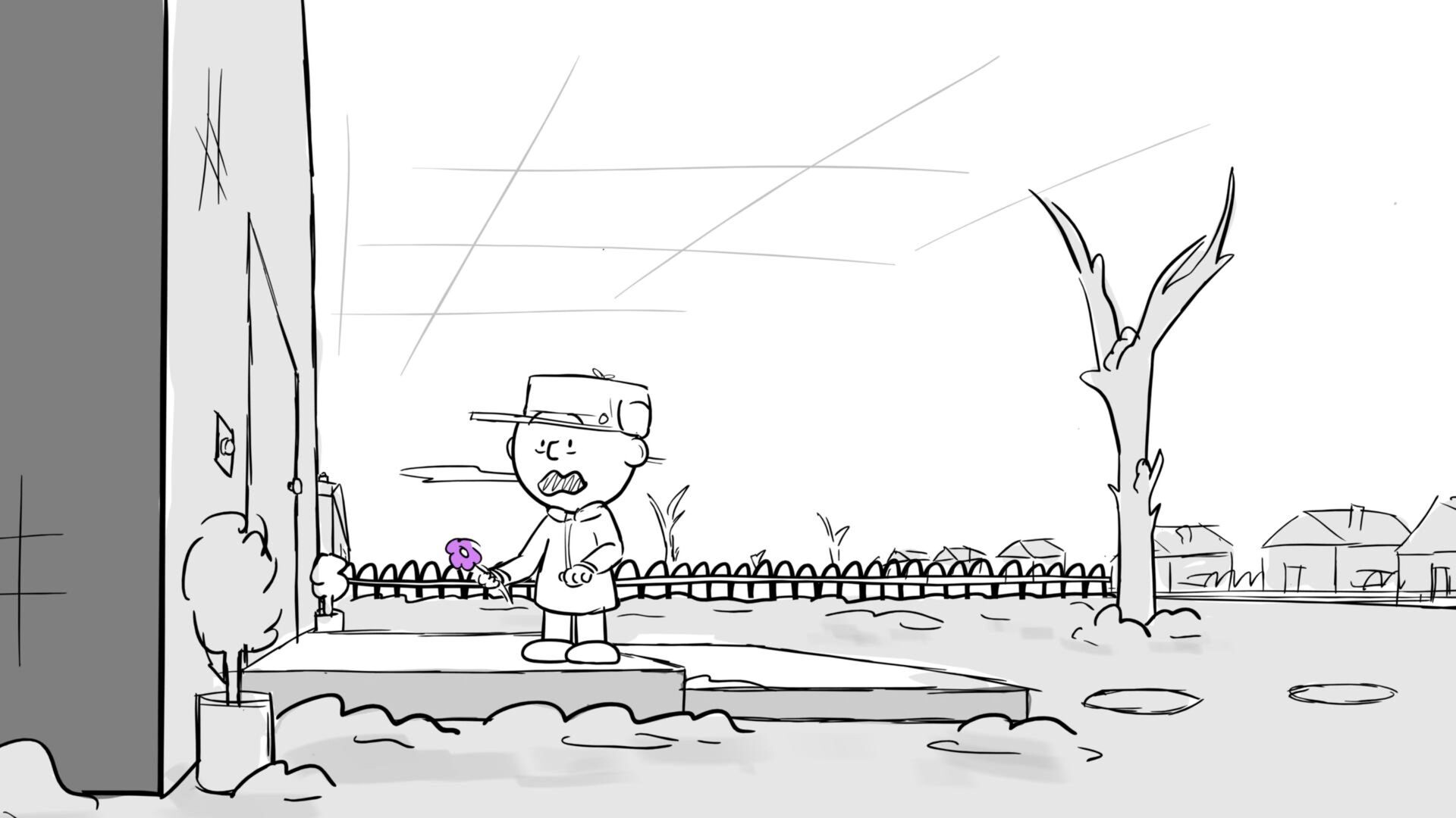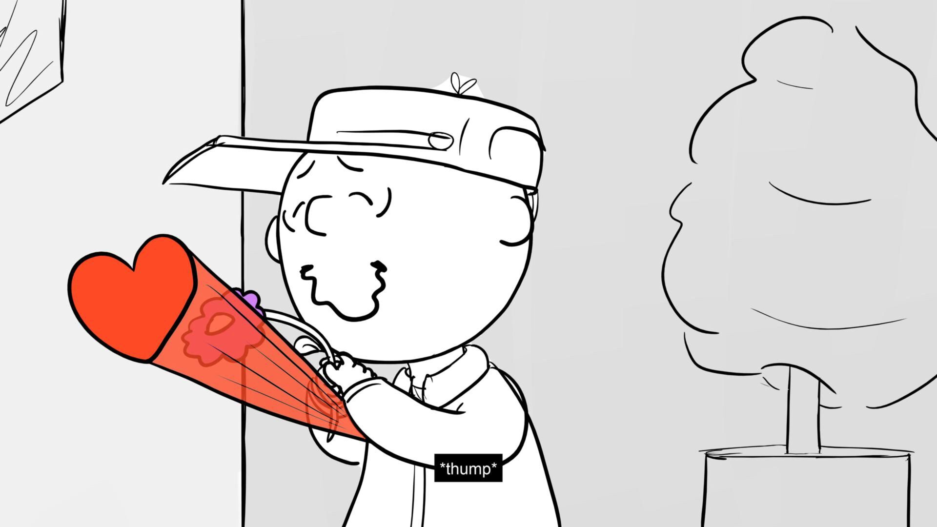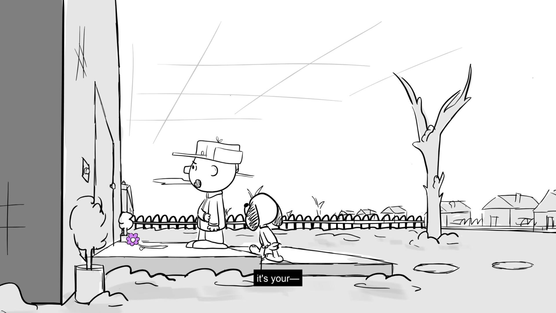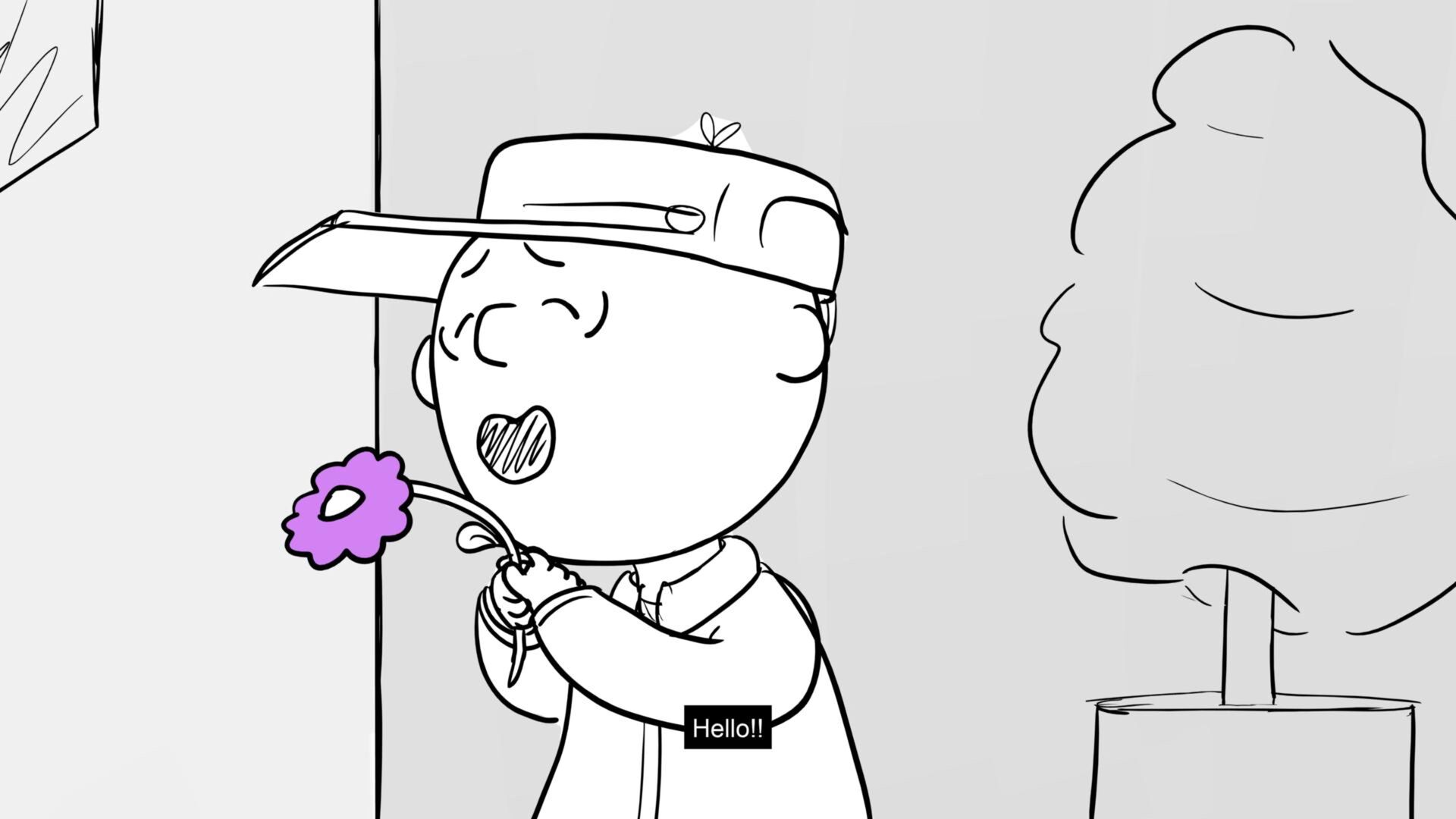 Charlie Brown anxiously plans on giving the little Red-Haired girl a purple flower with the help of his friend Snoopy.