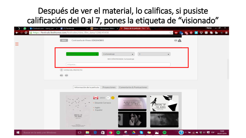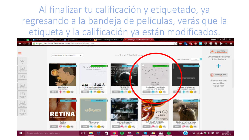 Al finalizar tu calificación y etiquetado, ya regresando a la