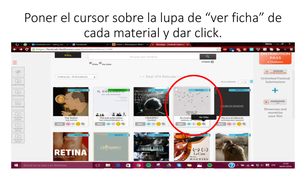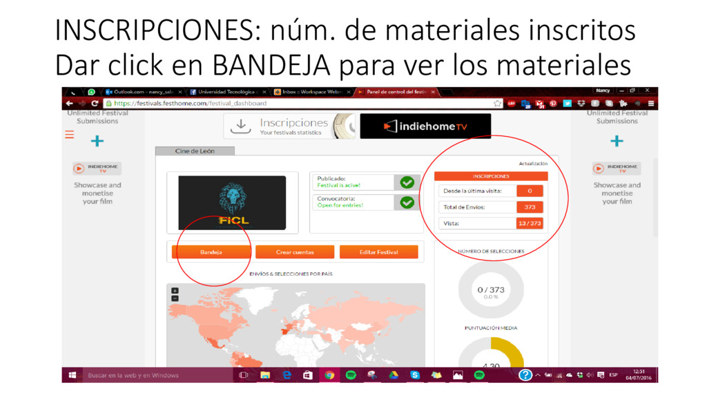 INSCRIPCIONES: núm. de materiales inscritos Dar click en BANDEJA para