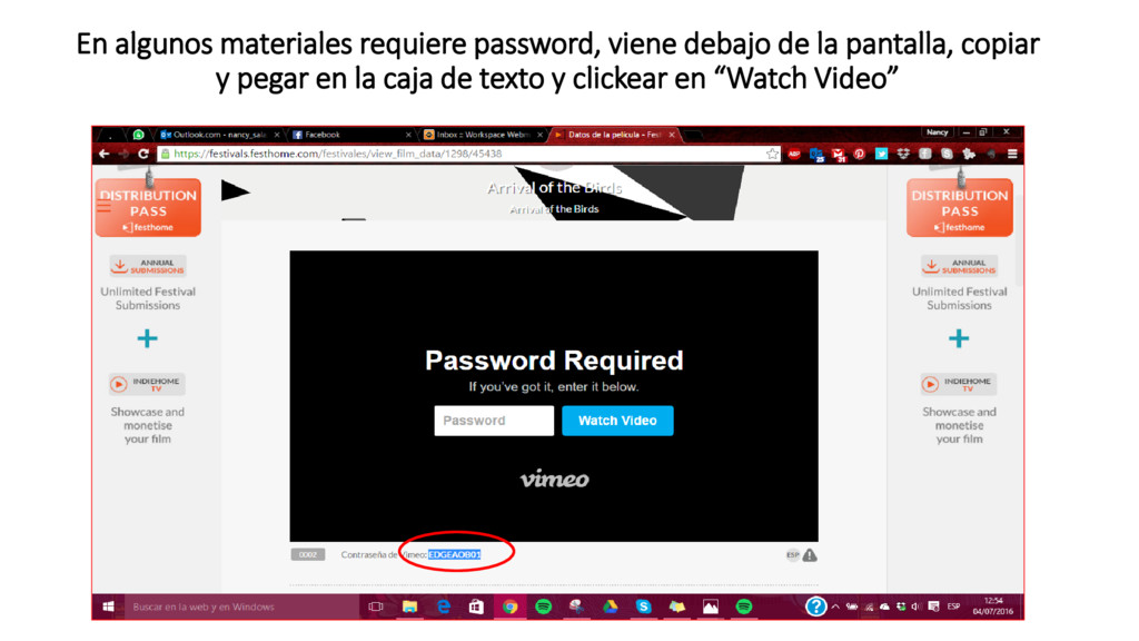 En algunos materiales requiere password, viene debajo de la pantalla,