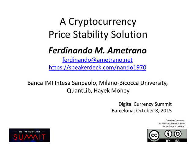 Presented at the Digital Currency Summit, Barcelona, October 8, 2015