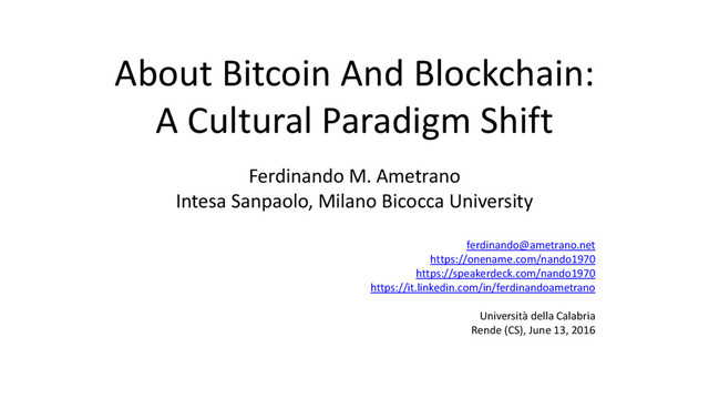 Presented at the Università della Calabria