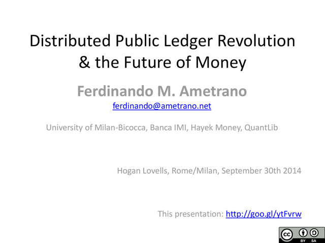 M. Ametrano [email protected] University of Milan-Bicocca, Banca IMI, Hayek Money, QuantLib Hogan Lovells, Rome/Milan, September 30th 2014 This presentation: http://goo.gl/ytFvrw