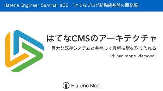 はてなCMSは、はてなブログと共存しています。複雑かつ歴史のあるプロダクトのはてなブログを壊さずに、最新技術を取り入れてはてなCMSを開発した方法とそのアーキテクチャを紹介します。Perlで作られたページからNext.jsで作られたページへのシームレスな以降、既存のプロダクトと認証認可を連携させる方法について、なぜこの選択をしたのか、どのように開発したのかをお話しします。