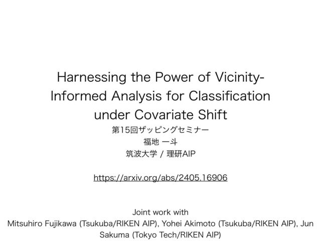)BSOFTTJOHUIF1PXFSPG7JDJOJUZ *OGPSNFE"OBMZTJTGPS$MBTTJ fi DBUJPO VOEFS$PWBSJBUF4IJGU ୈճβοϐϯάηϛφʔ Ұే ஜେֶཧݚ"*1 IUUQTBSYJWPSHBCT +PJOUXPSLXJUI