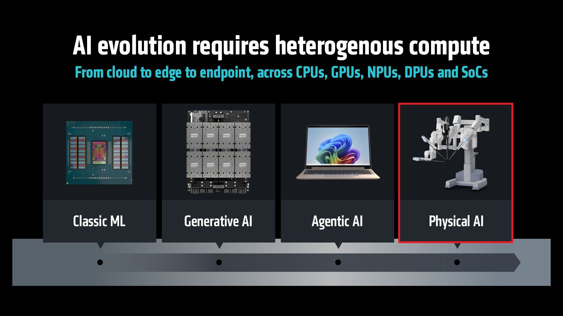 endpoint, across CPUs, GPUs, NPUs, DPUs and SoCs Physical AI Generative AI Agentic AI Classic ML