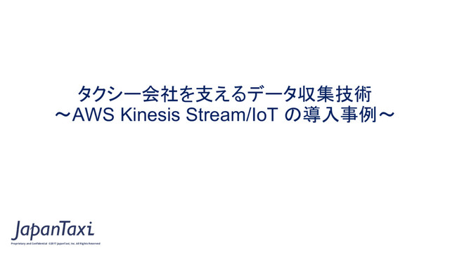 Proprietary and Confidential ©2017 JapanTaxi, Inc. All Rights Reserved タクシー会社を支えるデータ収集技術