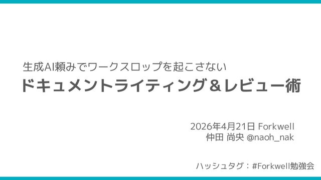 2026/04/21 Forkwell勉強会での登壇資料です。 https://forkwell.connpass.com/event/389801/ X:https://x.com/naoh_nak