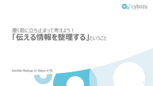 書き始める前に、情報をきちんと分解して整理しよう、というお話です。 「DevRel Meetup in Tokyo #76 〜分かりやすいドキュメントを学ぼう〜」のプレゼンスライド。 https://devrel.connpass.com/event/250808/ 内容の一部は「テクニカルライティングの基本」と同じです。 https://speakerdeck.com/naohiro_nakata/technicalwriting