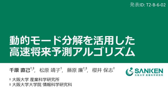 Lab. 54 DEIM2024 X' DMD operator A dh dh U dh k k k V& k l- − h + 1 Φ dh k Λ k k DMD modes DMD eigenvalues l. l- t/ t- t0 t1 l2 X! X" d Future Values (unknown) Observed Sequence (known) Data Stream X t Σ Time ⋮ !!"# $ {" #! , … } {" #! + 1 , … } )ℎ !$ = ![$% : $& ] "(#! ) ⋮ "(#! + 1) Time t ) Regime ' (a) (b) Time t . . )ℎ . Φ Λ [P2] 𝑿𝐚𝐮𝐠 𝑪 を⽤いて レジーム 𝜽 = {𝚲, 𝚽} を推定する