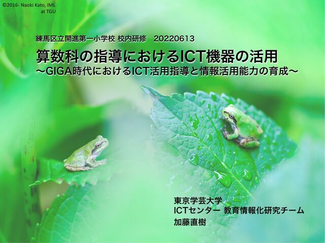 ©2016- Naoki Kato, IML at TGU 練馬区立開進第一小学校 校内研修 20220613 算数科の指導におけるICT機器の活用