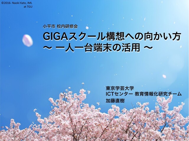 ©2016- Naoki Kato, IML at TGU 小平市 校内研修会 GIGAスクール構想への向かい方 ~