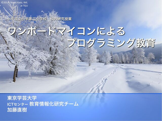©2014- Naoki Kato, IML at TGU 小平市立小平第三小学校 校内研究授業 ワンボードマイコンによる プログラミング教育