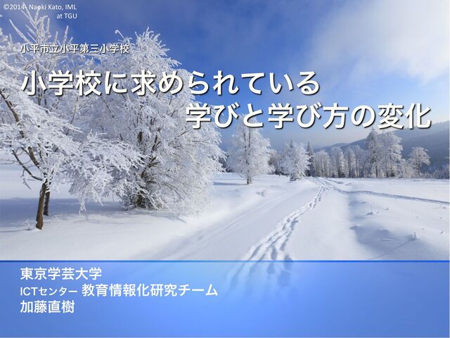 ©2014- Naoki Kato, IML at TGU 小平市立小平第三小学校 小学校に求められている 学びと学び方の変化 東京学芸大学