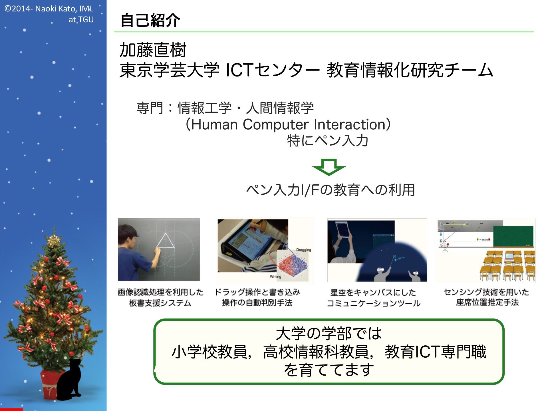 ©2014- Naoki Kato, IML at TGU ࣗݾհ Ճ౻थ ౦ژֶܳେֶ*$5ηϯλʔڭҭใԽݚڀνʔϜ ઐɿใֶɾਓؒใֶ