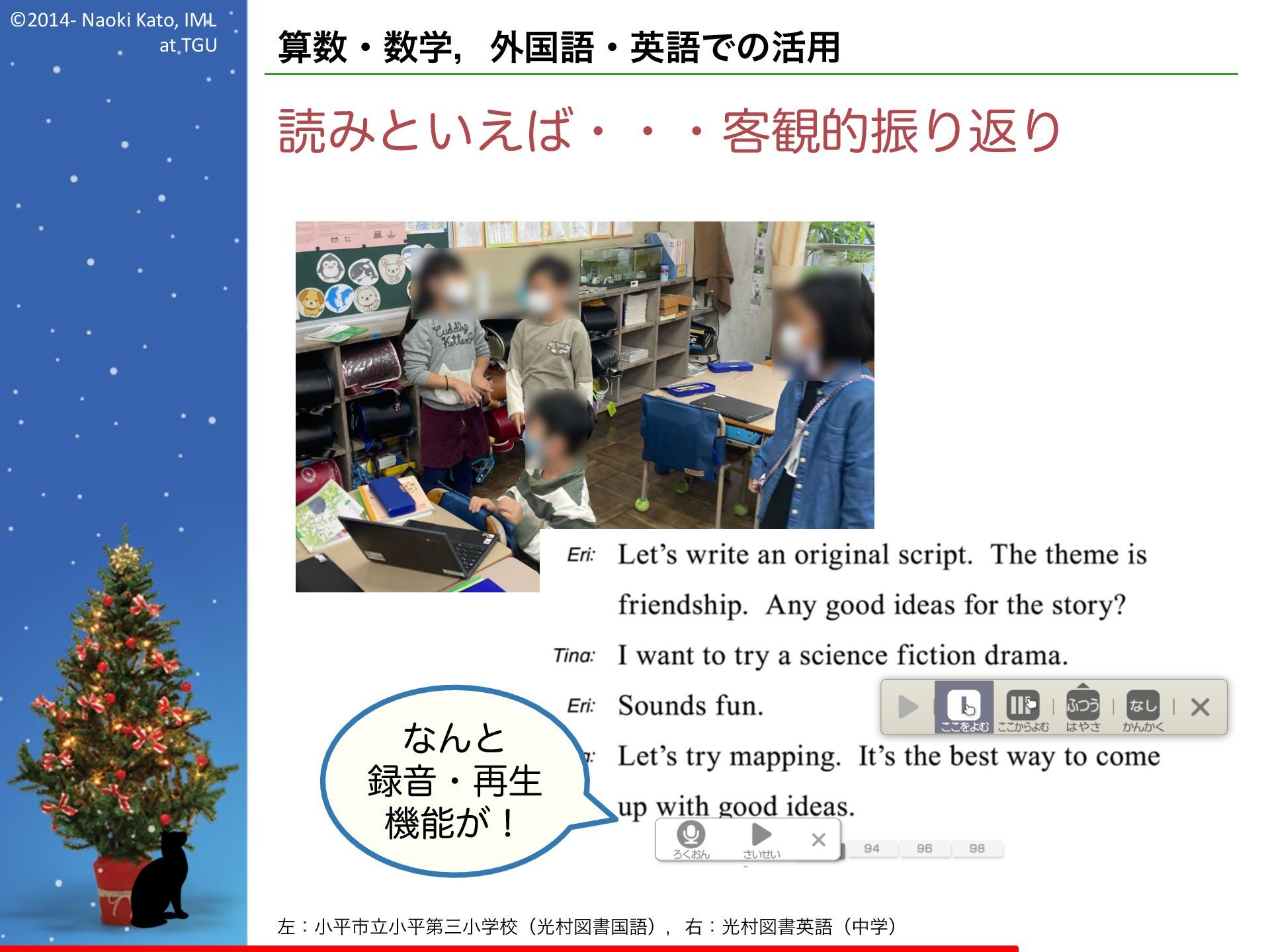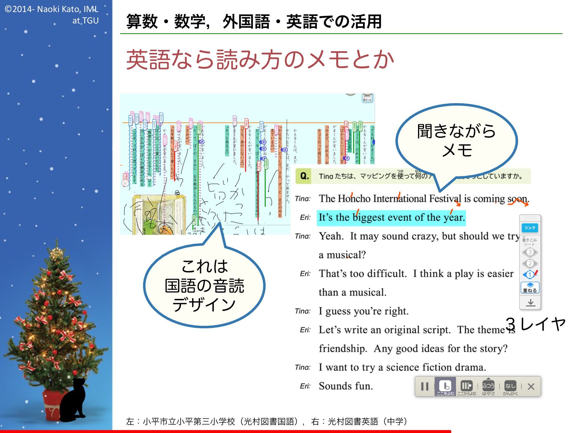 ©2014- Naoki Kato, IML at TGU ࢉɾֶɼ֎ࠃޠɾӳޠͰͷ׆༻ ʮڭՊॻΛௌ͘ɾ؍Δʯ ্ɿখฏࢢཱখฏୈࡾখֶߍʢେຊਤॻཧՊʣɼࠨԼɿখฏࢢཱখฏୈࡾখֶߍ ઌੜ͕ݟͤΔͷͳ͘