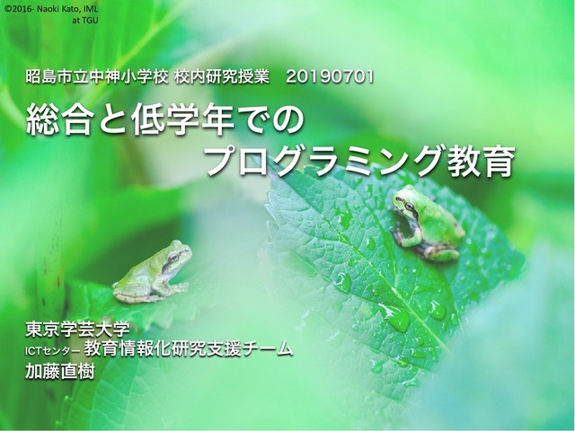 ©2016- Naoki Kato, IML at TGU 昭島市立中神小学校 校内研究授業 20190701 総合と低学年での