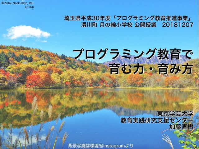 20181207 プログラミング教育で 育む力・育み方 東京学芸大学 教育実践研究支援センター 加藤直樹 背景写真は環境省Instagramより