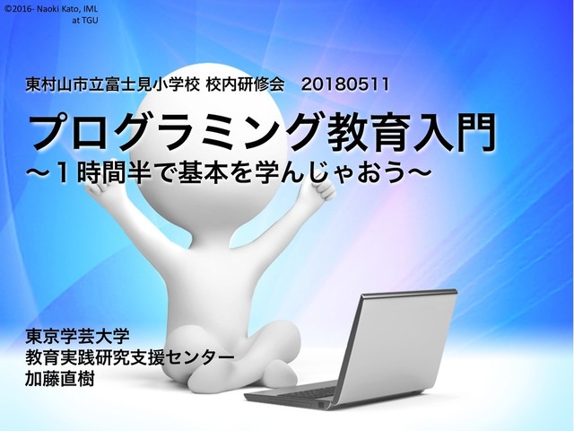 1. ©2016- Naoki Kato, IML at TGU 東村山市立富士見小学校 校内研修会 20180511 プログラミング教育入門