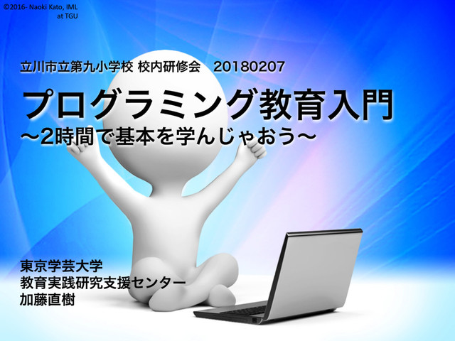5~13歳でCS,IT,DL教育必修化 n 5~10歳でビジュアルプログラミング n 11~15歳で汎用プログラミング言語 フィンランド l 2016年 7~16歳へのプログラミグ教育を 必修化 n 9~12歳でビジュアルプログラミング n 13~16歳で汎用プログラミング言語 オーストラリア l 2016年 8~11歳へのプログラミング教育を 必修化? n 8,9歳でビジュアルプログラミング n 10,11歳で汎用プログラミング言語 参考:平成26年度文部科学省委託事業「「諸外国におけるプログラミング教育に関する調査研究」報告書