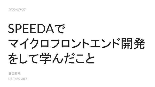 SPEEDAで マイクロフロントエンド開発 をして学んだこと 2022/09/27 冨田直希 UB Tech Vol.3