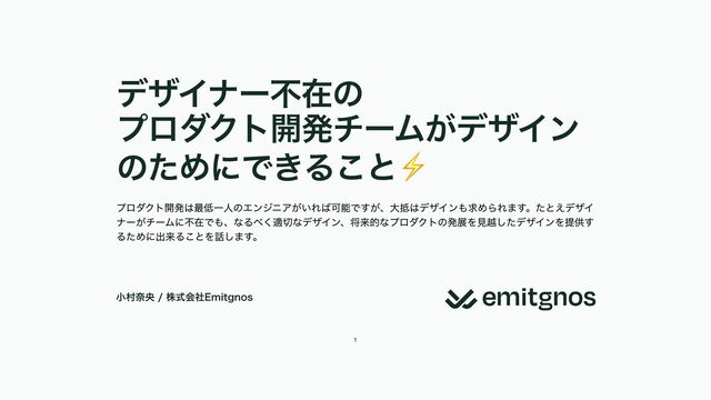 খଜಸԝגࣜձࣾ&NJUHOPT σβΠφʔෆࡏͷ ϓϩμΫτ։ൃνʔϜ͕σβΠϯ ͷͨΊʹͰ͖Δ͜ͱ⚡ 1 ϓϩμΫτ։ൃ࠷ҰਓͷΤϯδχΞ͕͍ΕՄೳͰ͕͢ɺେσβΠϯٻΊΒΕ·͢ɻͨͱ͑σβΠ φʔ͕νʔϜʹෆࡏͰɺͳΔ͘దͳσβΠϯɺকདྷతͳϓϩμΫτͷൃలΛݟӽͨ͠σβΠϯΛఏڙ͢ ΔͨΊʹग़དྷΔ͜ͱΛ͠·͢ɻ