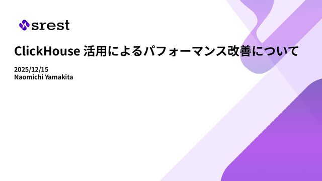 ClickHouse 活⽤によるパフォーマンス改善について 2025/12/15 Naomichi Yamakita
