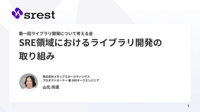 SREチーフエンジニア Yamakita Naomichi @sre_yamakita ベトナム‧ハノイでのオフショア事業⽴ち上げからキャリアをスタートし、ア プリケーション開発からマネジメントまでを経験 2015年に当社参画。徐々にクラウドインフラにも携わり、現在は横断的なテッ クリードやSREチーフエンジニアとして従事 「AWS DevDay Tokyo」登壇、「Amazon Web Services ブログ」、 「builders.flash」寄稿、AWS Community Builderメンバー 昨年よりSREのためのダッシュボード「srest」プロダクトオーナーを兼任