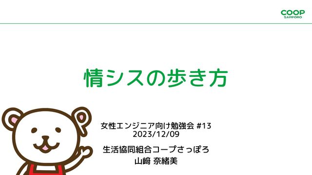 情シスの歩き方 女性エンジニア向け勉強会 #13 2023/12/09 生活協同組合コープさっぽろ 山﨑 奈緒美