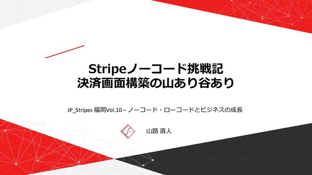 Stripeノーコード挑戦記 決済画⾯構築の⼭あり⾕あり JP_Stripes 福岡Vol.10 – ノーコード・ローコードとビジネスの成⻑ ⼭路 直⼈