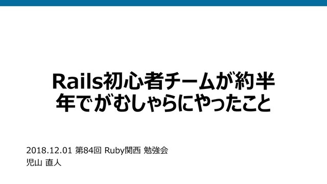 Rails初⼼者チームが約半 年でがむしゃらにやったこと 2018.12.01 第84回 Ruby関⻄ 勉強会 児⼭ 直⼈