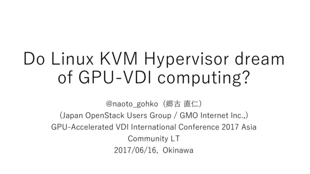 Cloud • My friend, Ohta-san. (he is the leader of the Japanese Raspberry-Pi user group.) • Open Source Summit Japan 2017 • LinuxCon Chaina 2017 https://speakerdeck.com/masafumi_ohta/gpu-on-openstack