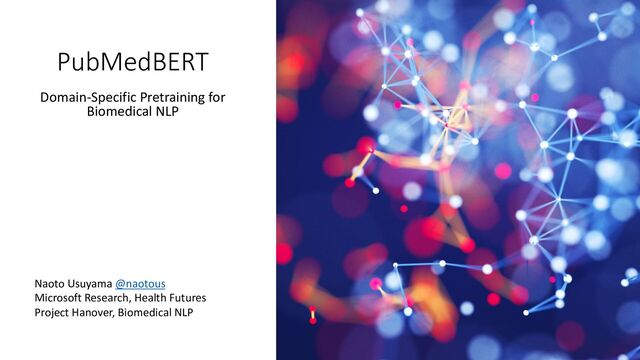 ® ace, ##ty, ##lt, ##ran, ##sf, ##eras, ##e Yu et al. “Domain-Specific Language Model Pretraining for Biomedical Natural Language Processing”, Special Issue on Computational Methods for Biomedical Natural Language Processing, ACM Transactions on Computing for Health, 2021. (arxiv) Domain-Specific Vocabulary
