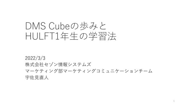 DMS Cubeの歩みと HULFT1年生の学習法 2022/3/3 株式会社セゾン情報システムズ マーケティング部マーケティングコミュニケーションチーム 宇佐見直人 1