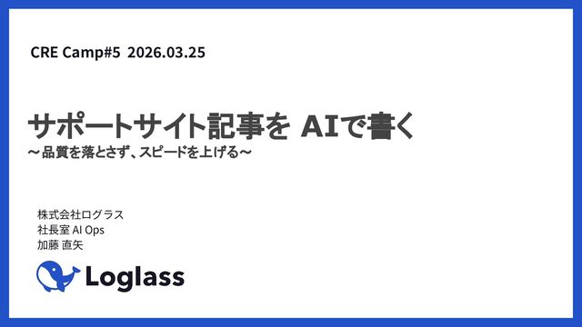 株式会社ログラス 社⻑室 AI Ops 加藤 直⽮ CRE Camp#5 2026.03.25 1