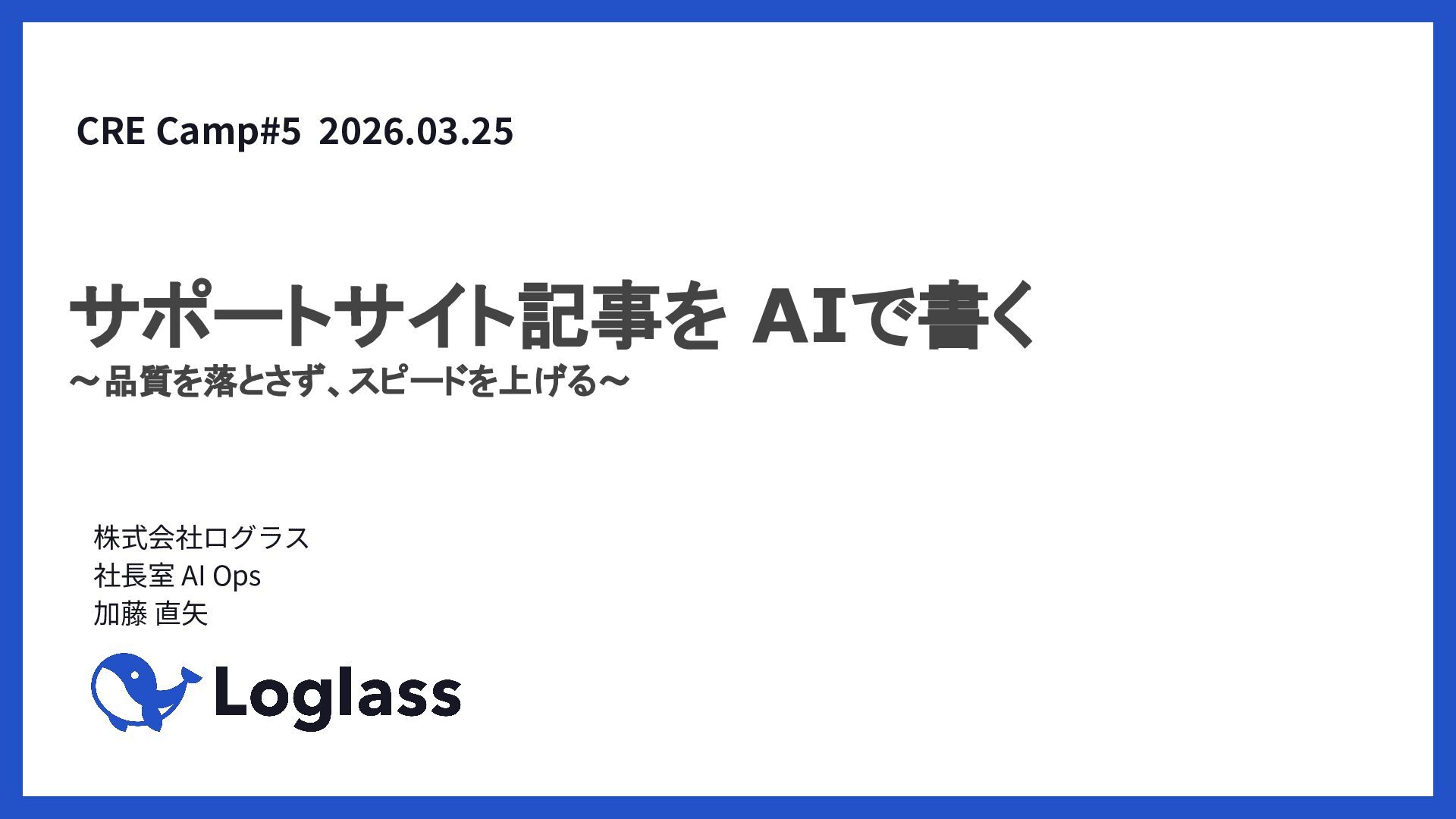 CRE Camp#5 サポートサイト記事をAIで書く 〜品質を落とさず、スピードを上げる〜