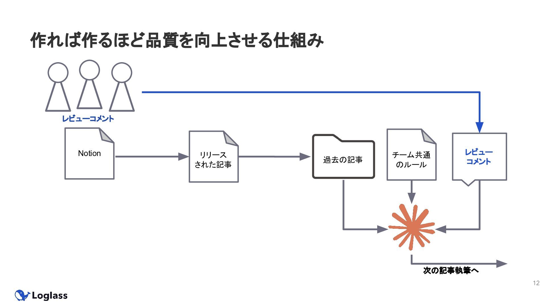 12 作れば作るほど品質を向上させる仕組み 過去の記事 チーム共通 のルール レビュー コメント Notion レビューコメント リリース