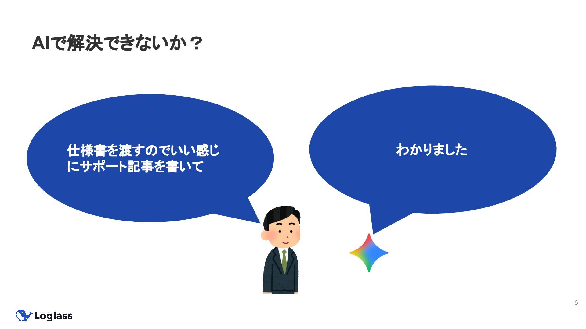 6 AIで解決できないか? 仕様書を渡すのでいい感じ にサポート記事を書いて わかりました