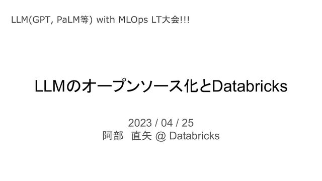 2023/4/25に実施したMLOps Communityイベント「LLM(GPT, PaLM等) with MLOps LT大会!!!」での発表スライドです。 https://mlops.connpass.com/event/279156/