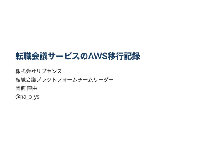 転職会議サー ビスの AWS 移行記録 株式会社リブセンス 転職会議プラットフォー ムチー ムリー ダー 岡前