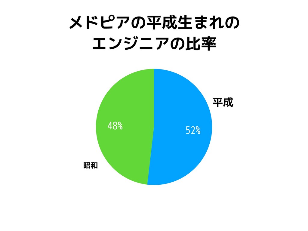 メドピアの平成生まれの エンジニアの比率 48% 52% 平成 昭和