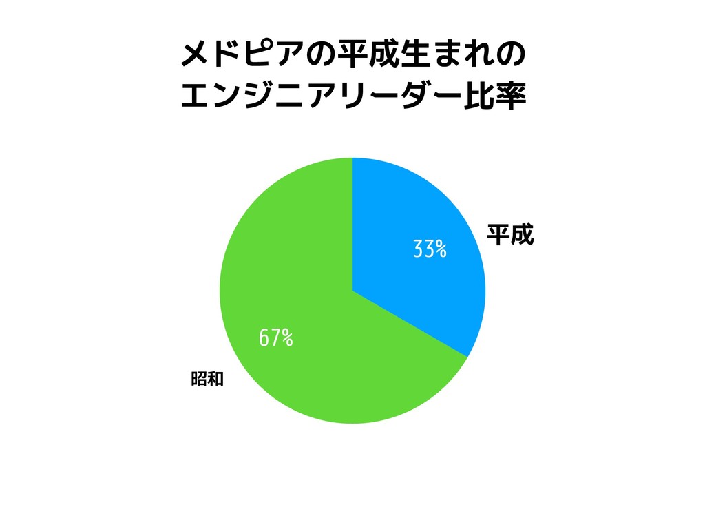 メドピアの平成生まれの エンジニアリーダー比率 67% 33% 平成 昭和